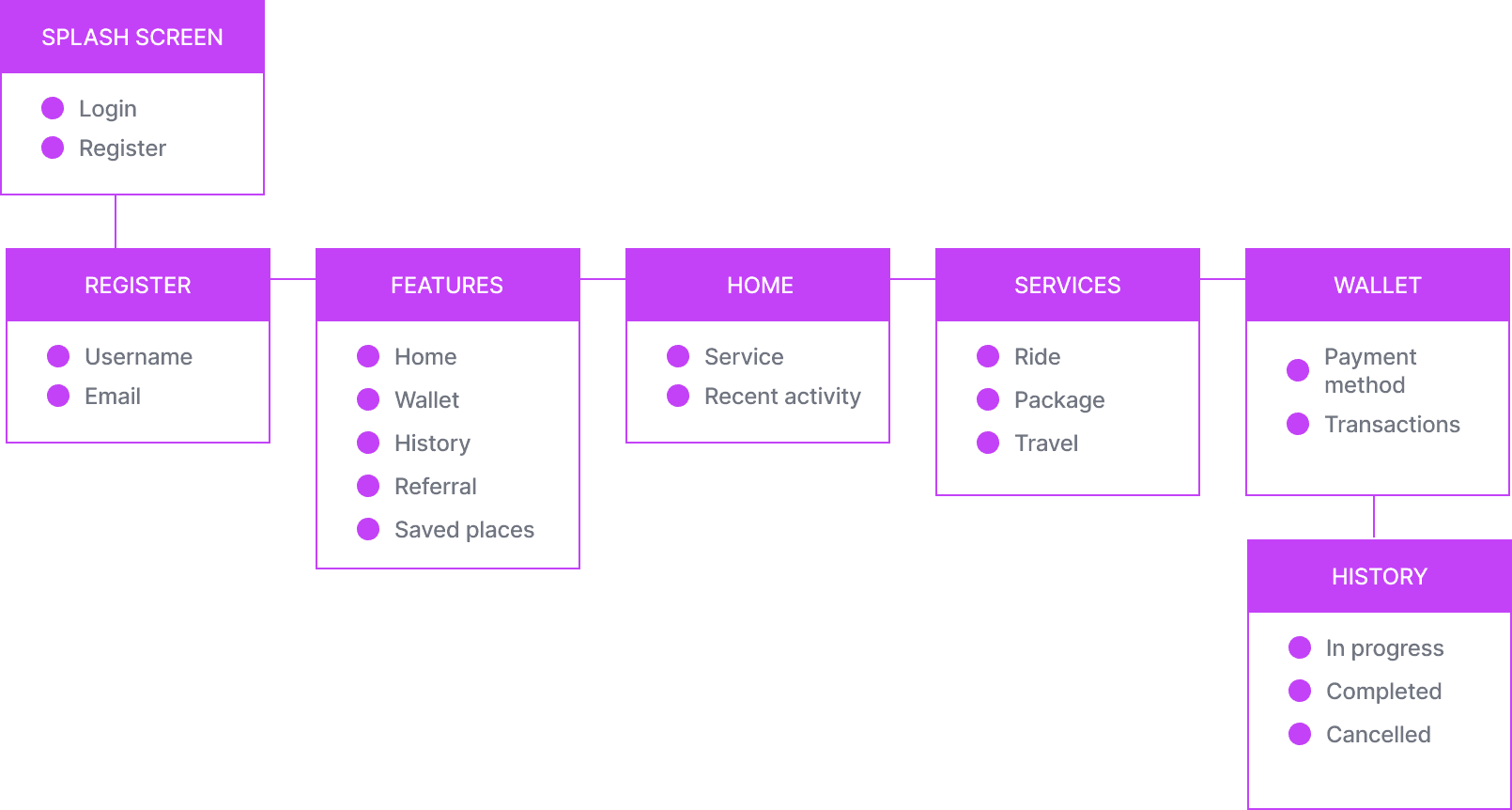 With a clear understanding of the key areas for improvement and ideas under each category, the team focused on crafting an effective information architecture to organize and structure the app's content and features. This involved creating a hierarchical layout of the app, categorizing features, and optimizing the user flow. The team employed a user-centric approach, ensuring that the revamped app would be intuitive, accessible, and efficient for all users.