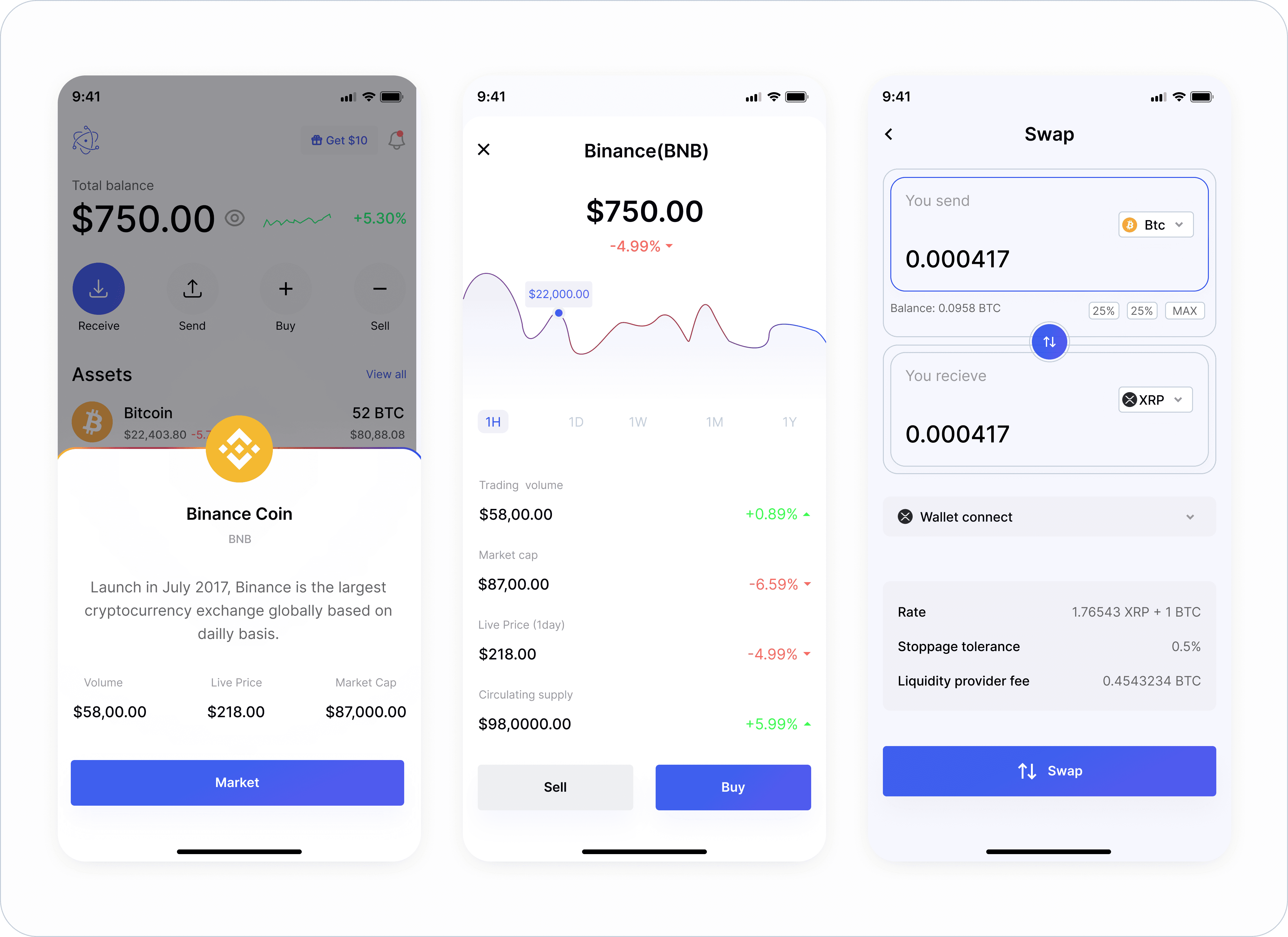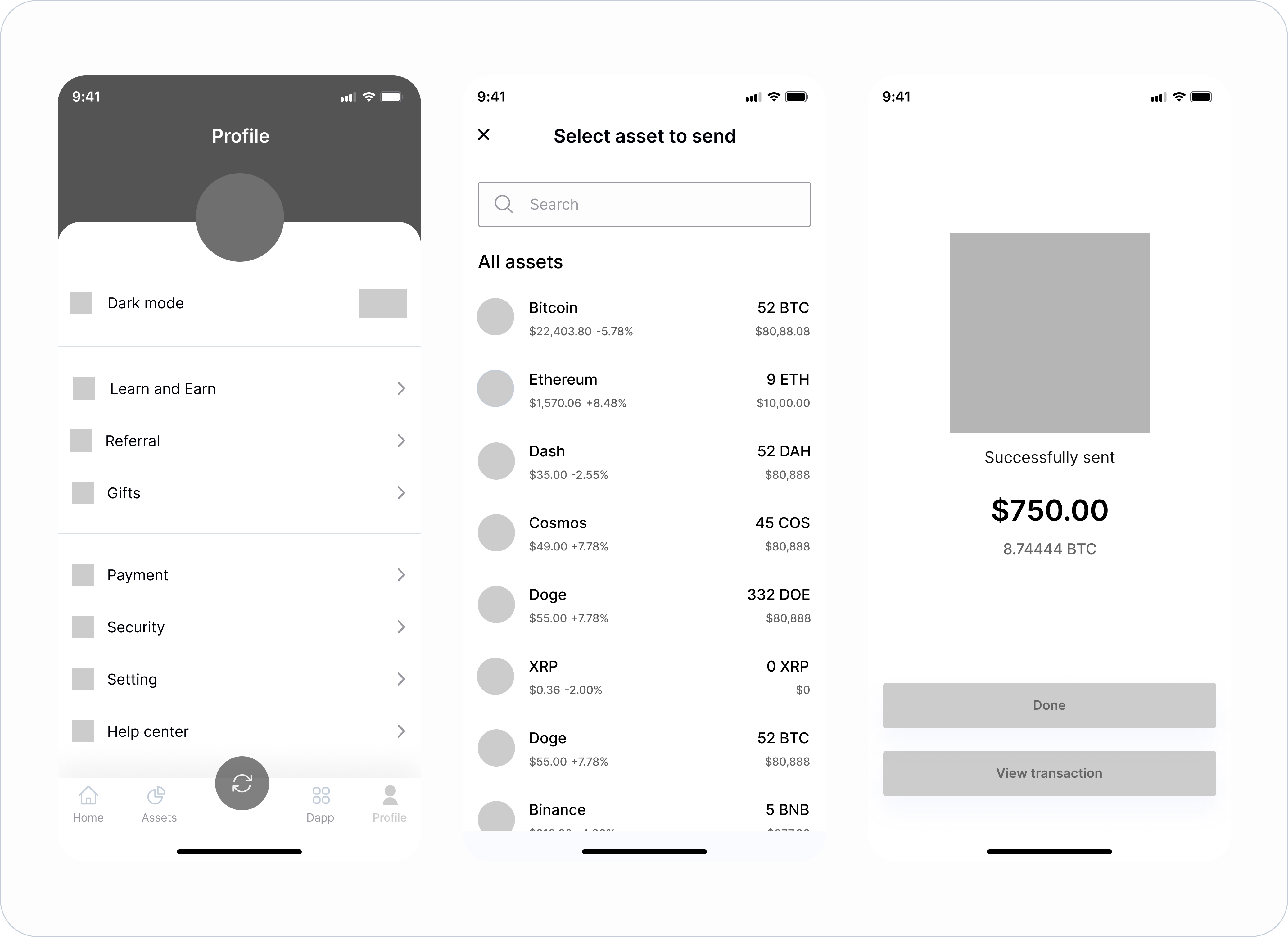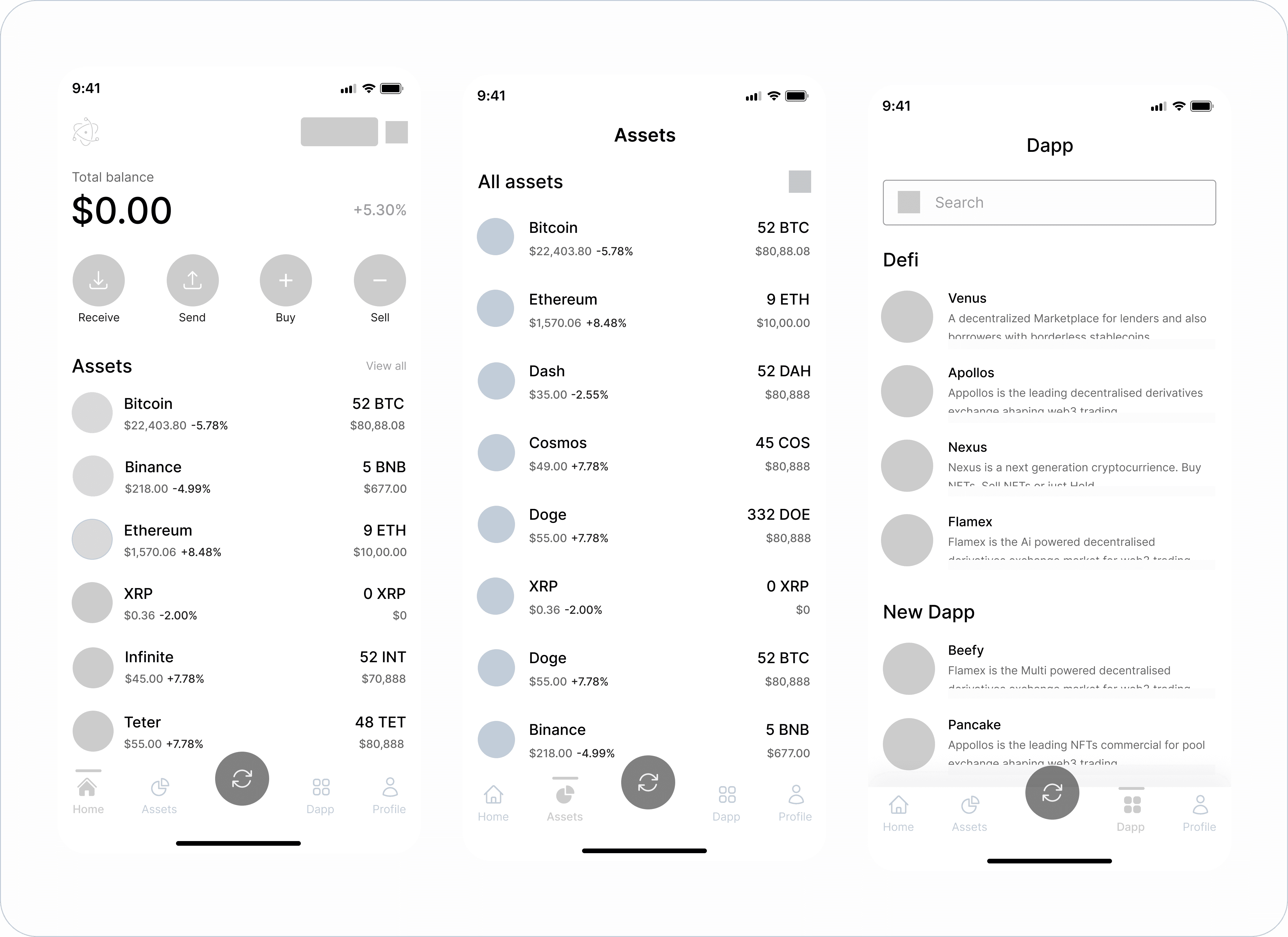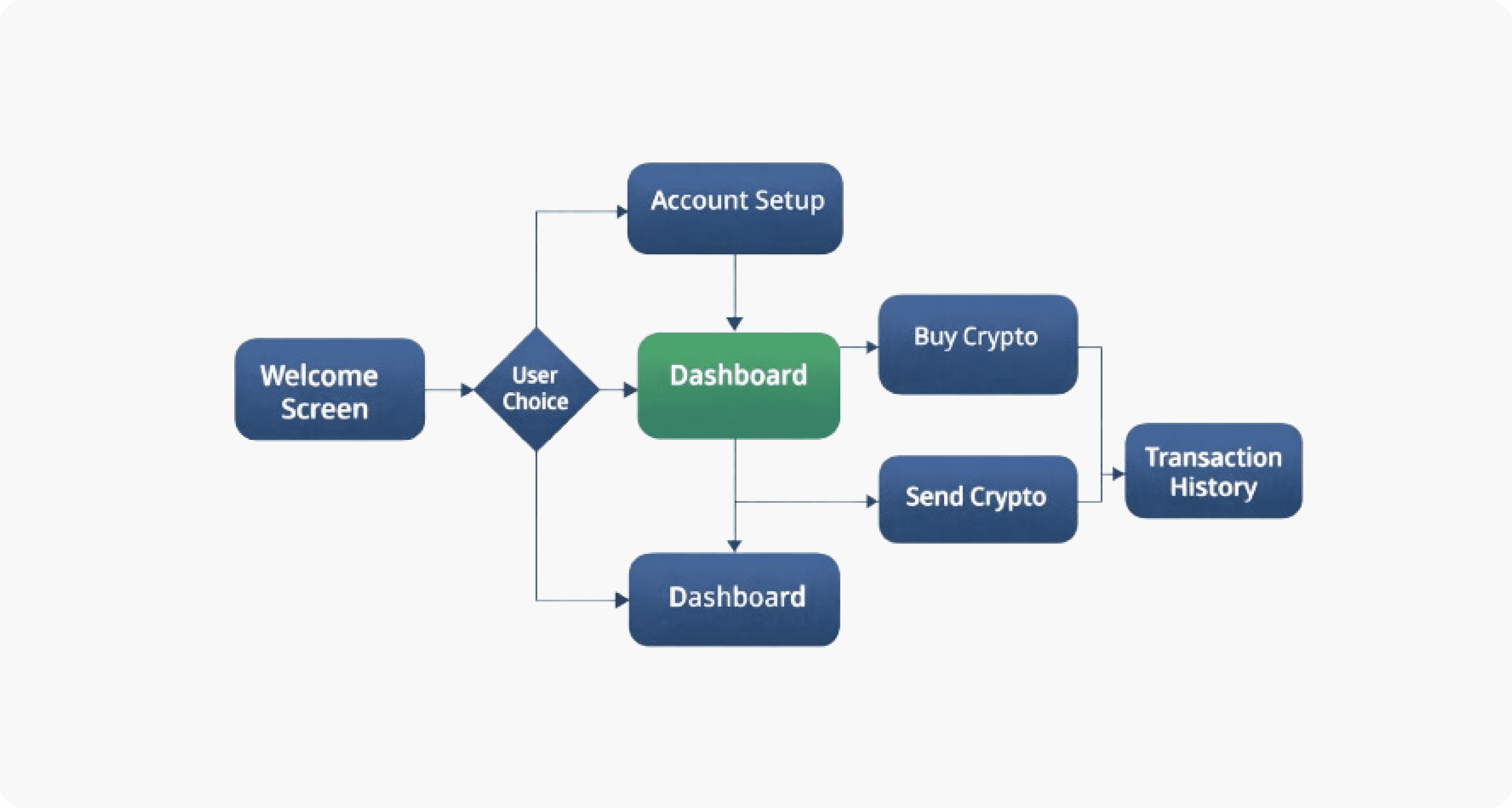 The team considered the needs and expectations of both novice and experienced crypto users, aiming to create an inclusive and accessible platform. They iterated on various user flow concepts, refining each element to ensure a smooth and logical progression through the app's features.